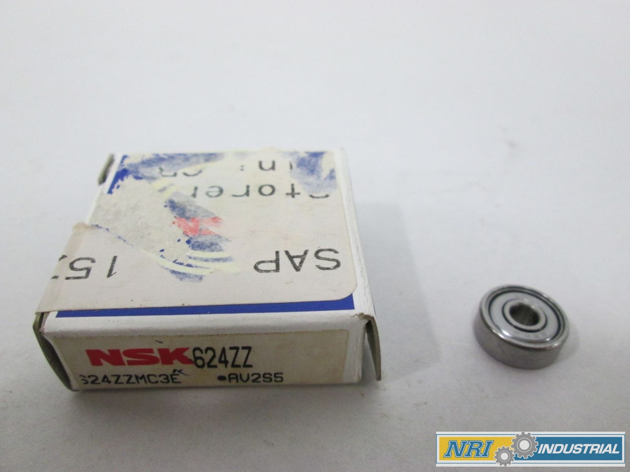 NSK 624ZZ Deep Groove Ball Bearing, Single Row, Double Shielded, Pressed Steel Cage, Normal Clearance, Metric, 4mm Bore, 13mm OD, 5mm Width, 40000rpm Maximum Rotational Speed, 485N Static Load Capacity, 1300N Dynamic Load Capacity