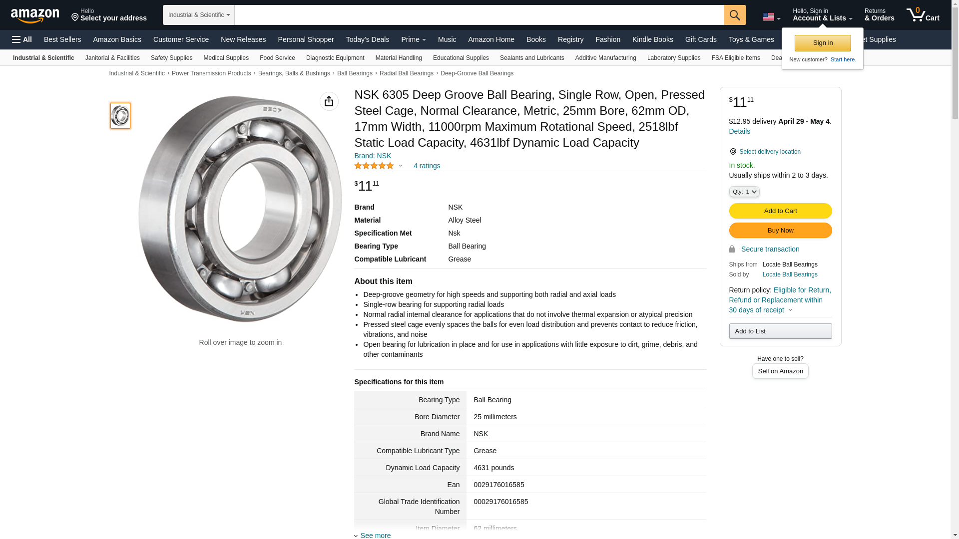 | Quality Bearings Online | 6305-NSK | 1 | 1 | ||