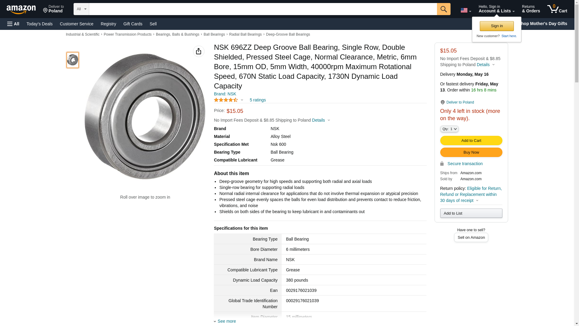 ![]() Quality Bearings Online | 696ZZ-NSK | 1 | -2 | 1 | |