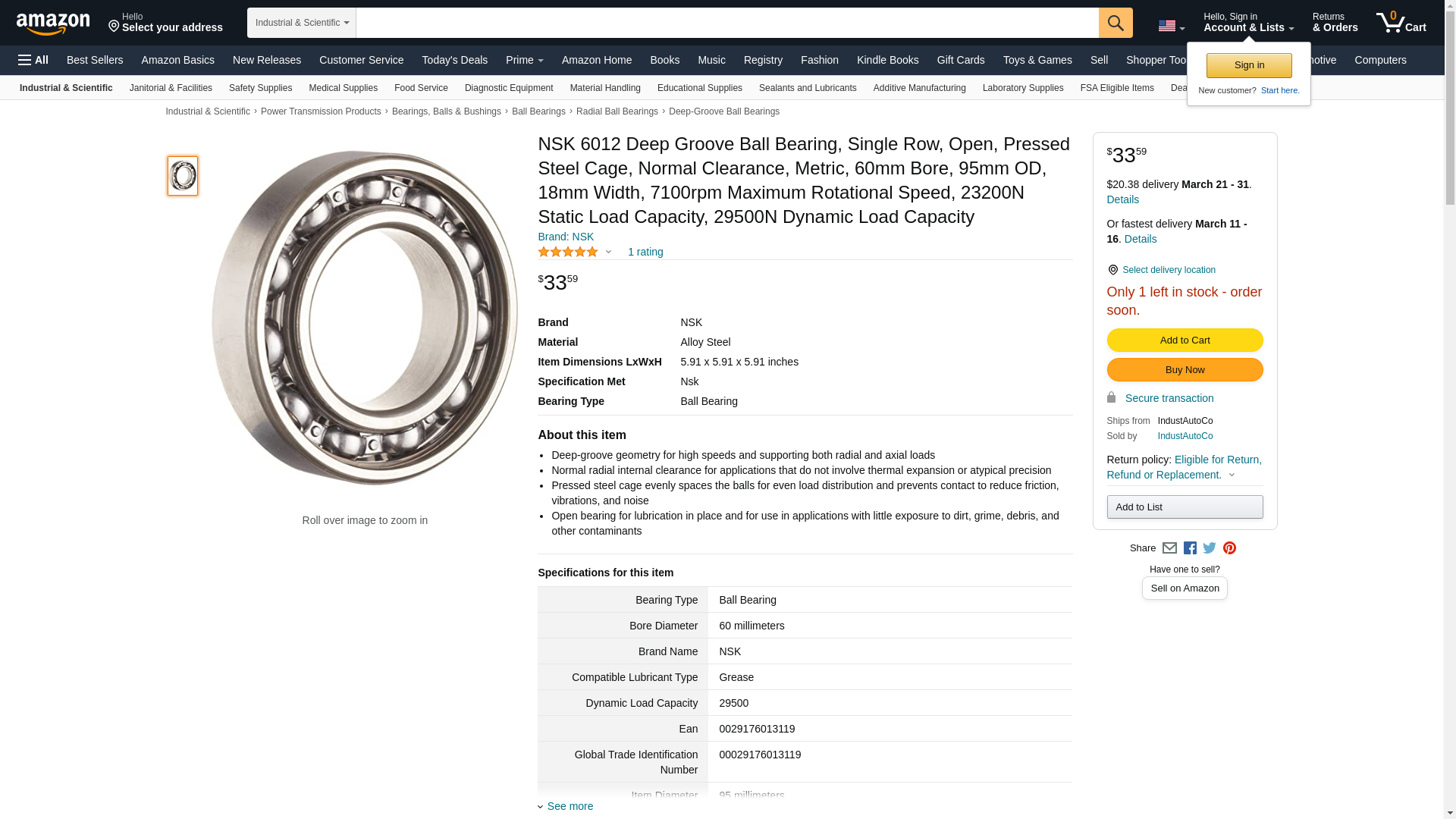 | Quality Bearings Online | 6012-NSK | 1 | 1 | ||