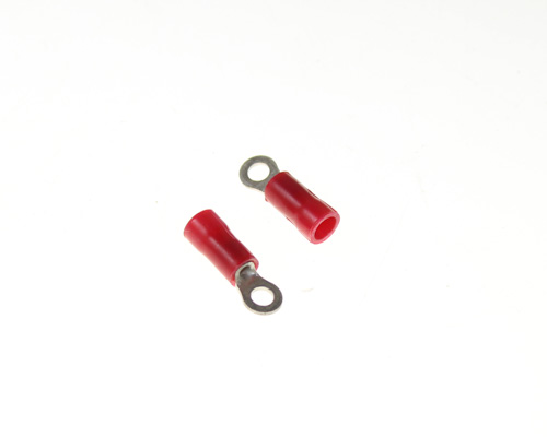 RING TERMINAL/#4 stud size, crimp, female, insulated, red, tin plating, copper material, nylon insulation, 17.07 mm in length, 300 VAC. PODG series. For use with 22-16 gauge wire.