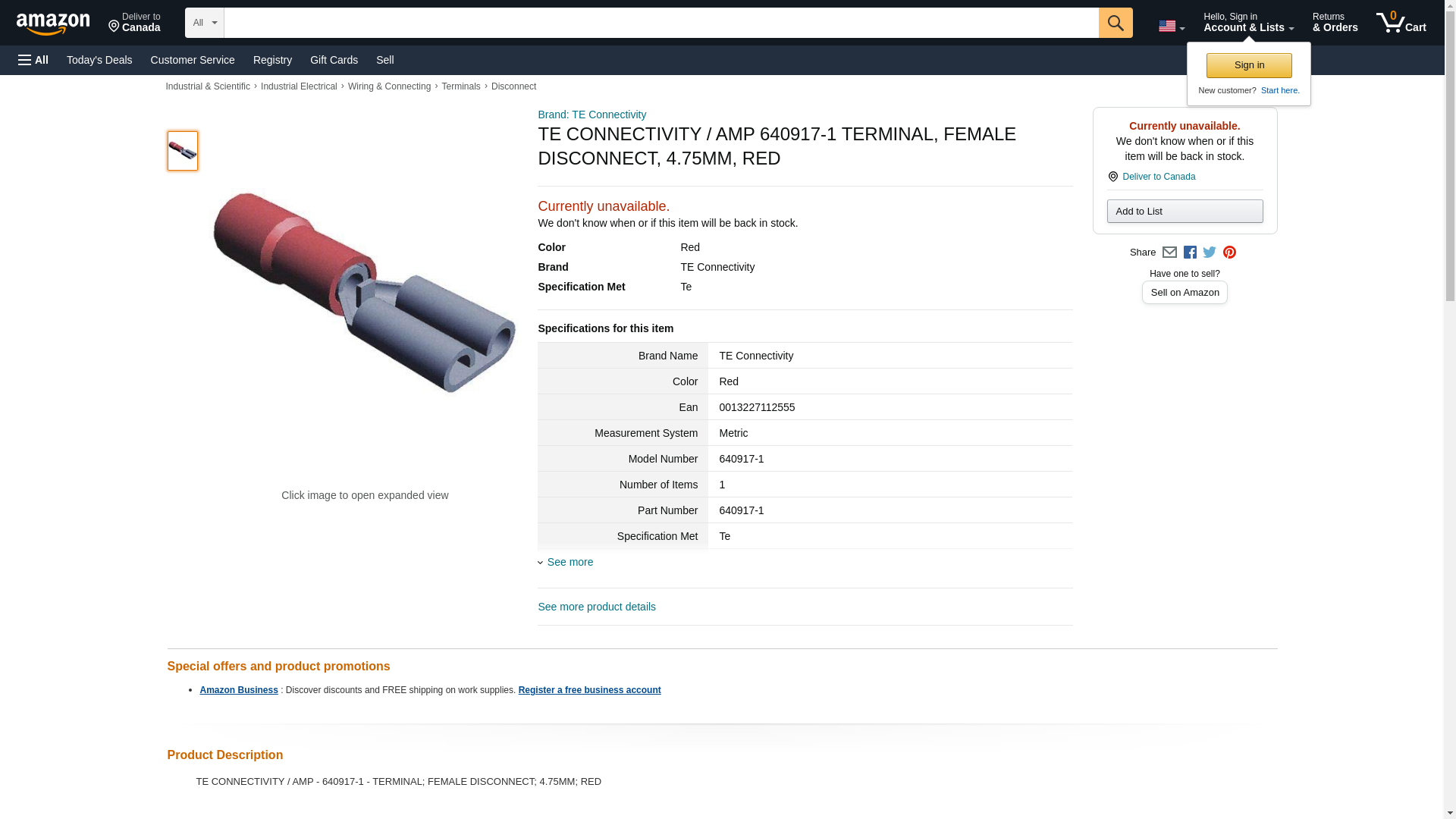 | TE Connectivity | 640917-1 | 1 | 15215 | 1 | 1 @ $0.24, 10 @ $0.22, 25 @ $0.20, 50 @ $0.20 |