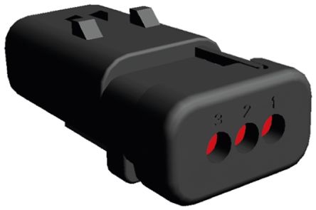 PLUG AND SOCKET CONNECTOR HOUSING; Product Range:AMPSEAL Series; Gender:Receptacle; No. of Positions:3Positions; Pitch Spacing:4.5mm; For Use With:AMPSEAL 16 Connectors; Colour:Red; Connector Mounting:Cable Mount RoHS Compliant: Yes