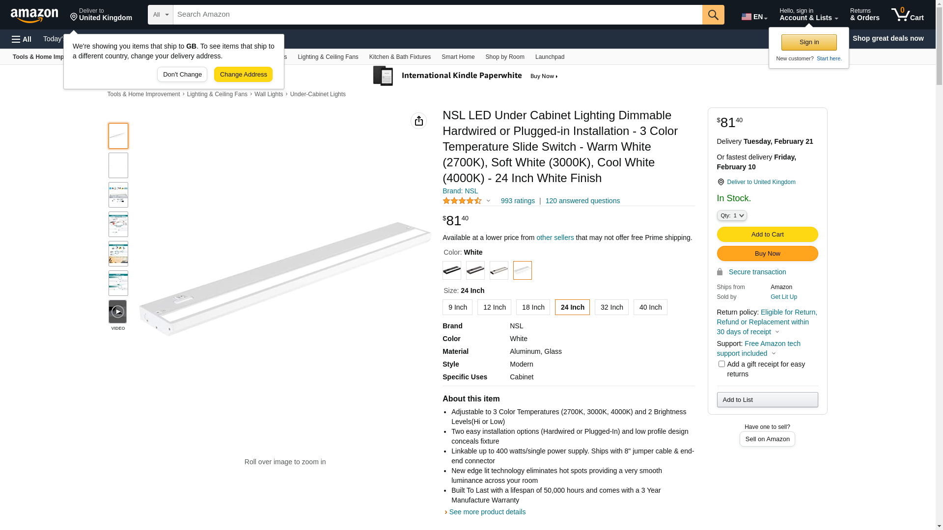 NSL LED Under Cabinet Lighting Dimmable Hardwired or Plugged-in Installation - 3 Color Temperature Slide Switch - Warm White (2700K), Soft White (3000K), Cool White (4000K) - 24 Inch White Finish