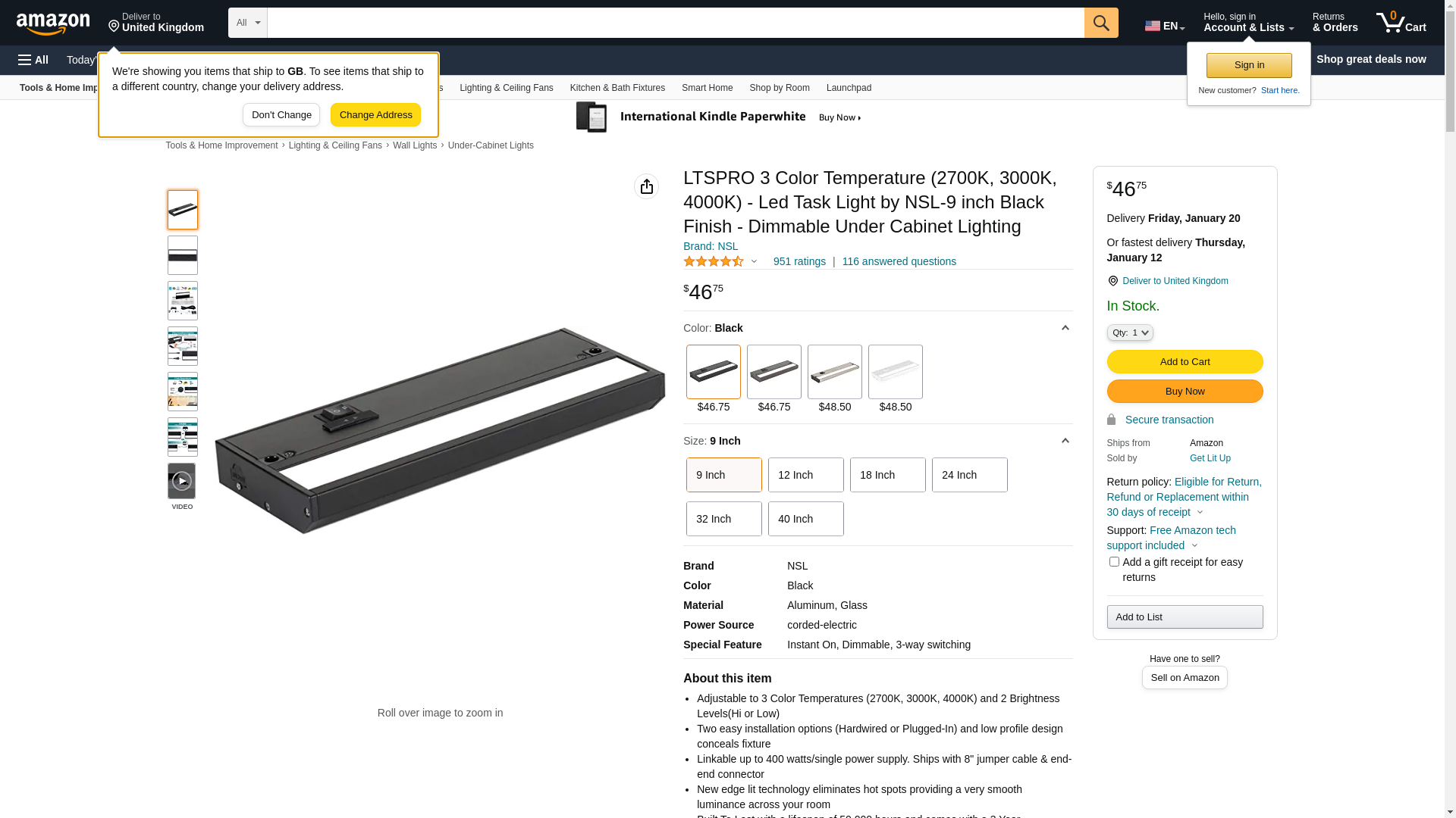 LTSPRO 3 Color Temperature (2700K, 3000K, 4000K) - Led Task Light by NSL-9 inch Black Finish - Dimmable Under Cabinet Lighting: Maxedbuy.com
