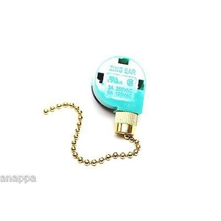 Features. For sale is one zing ear ze-268s6 pull chain switch.. Found in many ceiling fans and a great replacement for many other switch types.. This switch replaces the zing ear ze-208s6 switch.. This switch has a 4 in. Long standard gold chain.