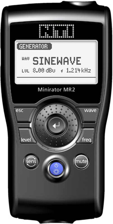 MR2 Analog Audio Generator provides a full set of analog audio test signals for set-up, maintenance and monitoring of professional audio equipment. Hand-held, using battery or external DC power supply, the generator is ergonomically packaged and has an intuitive user interface.</p>