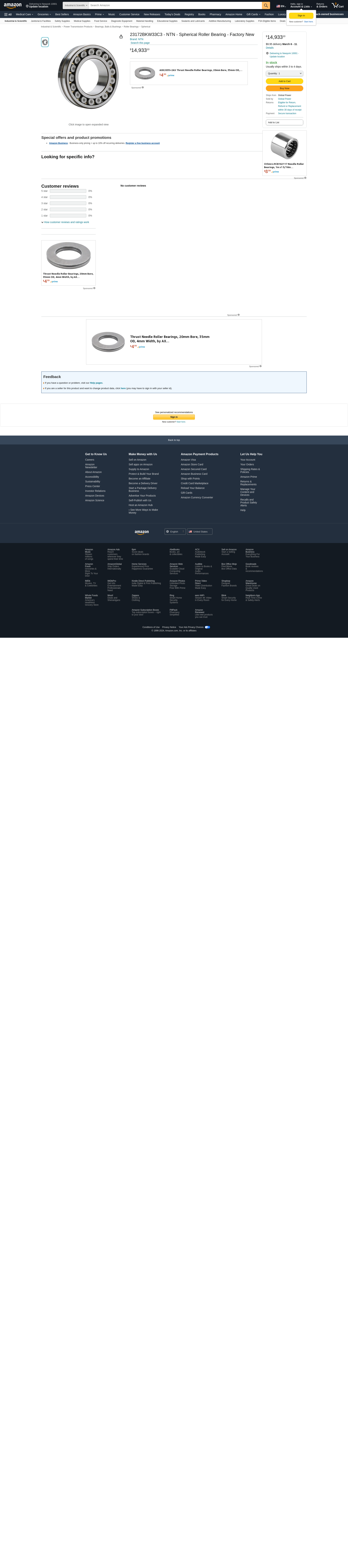 23172BKW33C3 - NTN - Spherical Roller Bearing - Factory New