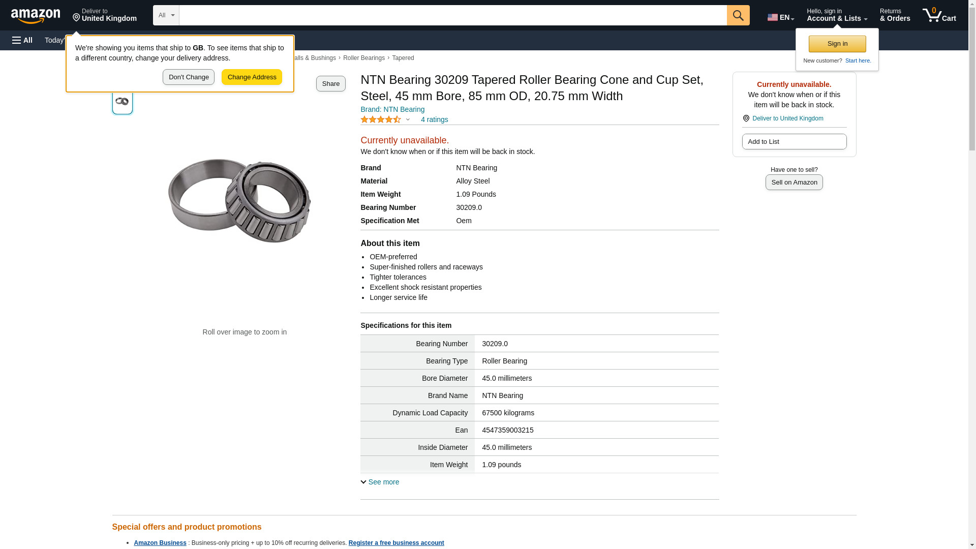 NTN Bearing 30209 Tapered Roller Bearing Cone and Cup Set, Steel, 45 mm Bore, 85 mm OD, 20.75 mm Width