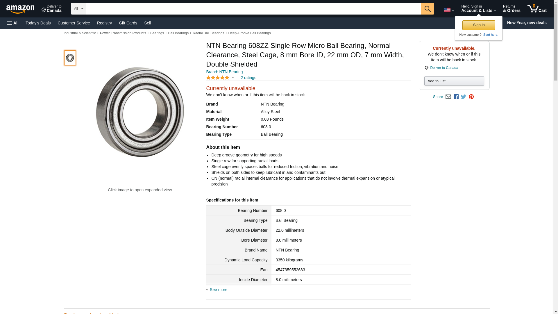 | NTNB 608ZZ | 1 | -2 | 1 | 1 @ $0.00 | |