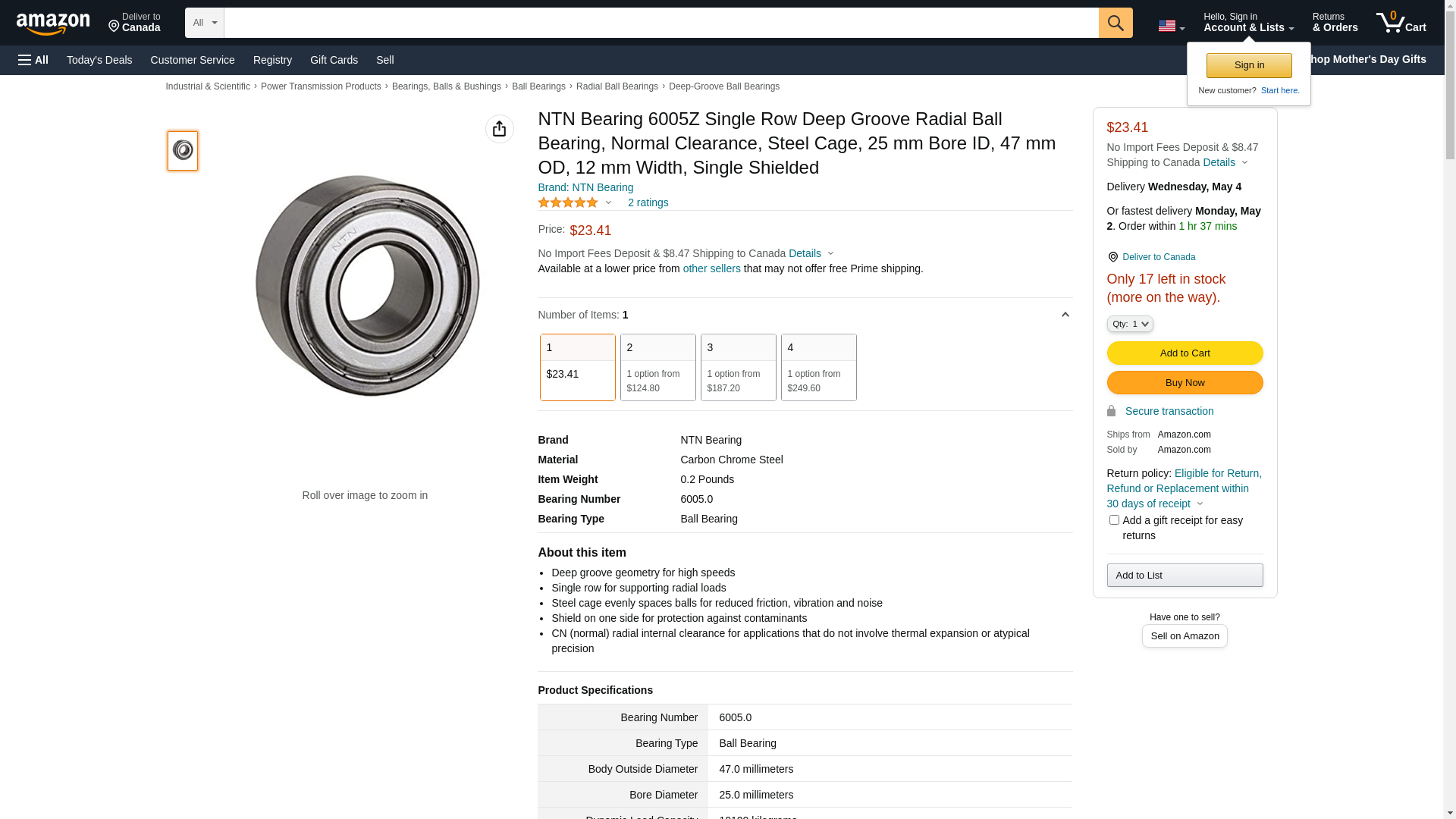 | NTNB 6005Z BALL BRG | 1 | -2 | 1 | 1 @ $0.00 | |