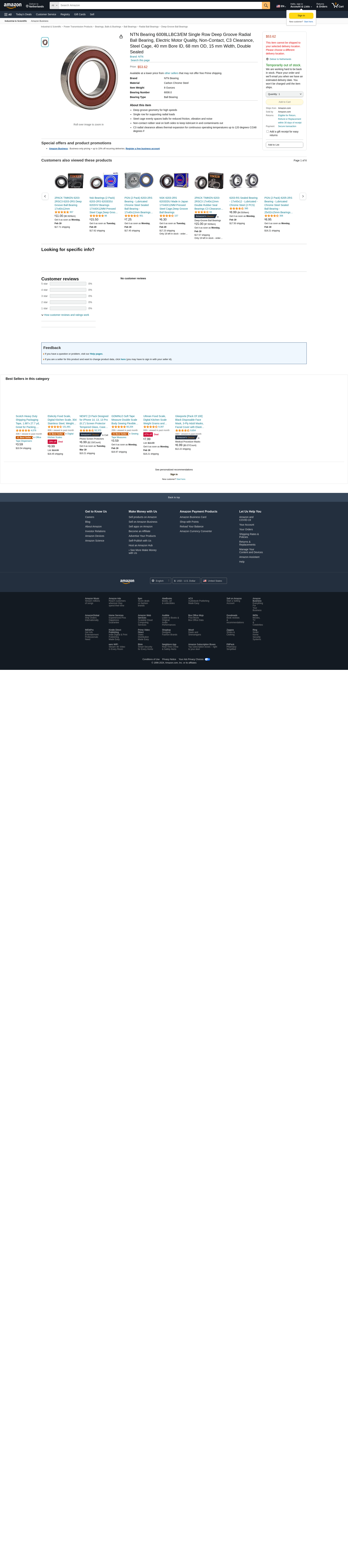NTN Bearing 6008LLBC3/EM Single Row Deep Groove Radial Ball Bearing, Electric Motor Quality, Non-Contact, C3 Clearance, Steel Cage, 40 mm Bore ID, 68 mm OD, 15 mm Width, Double Sealed