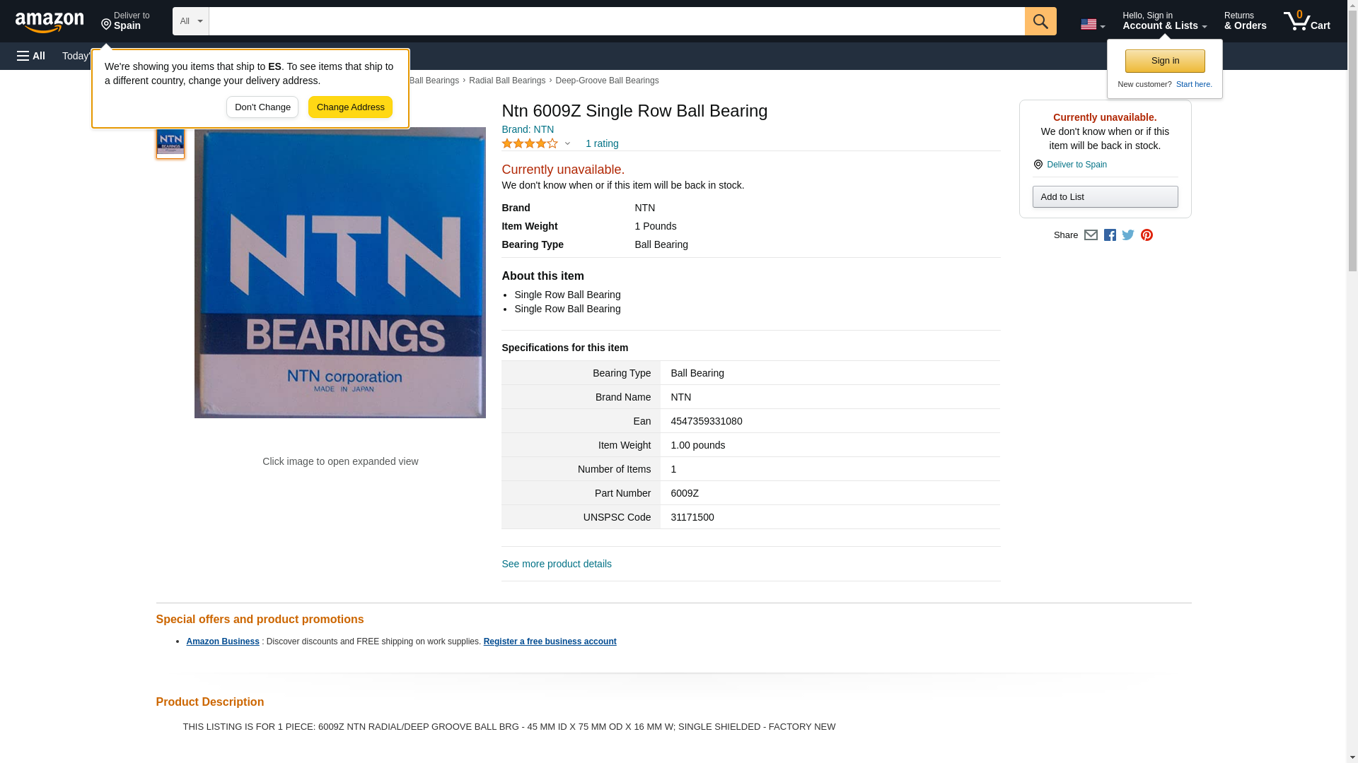Ntn 6009Z Single Row Ball Bearing