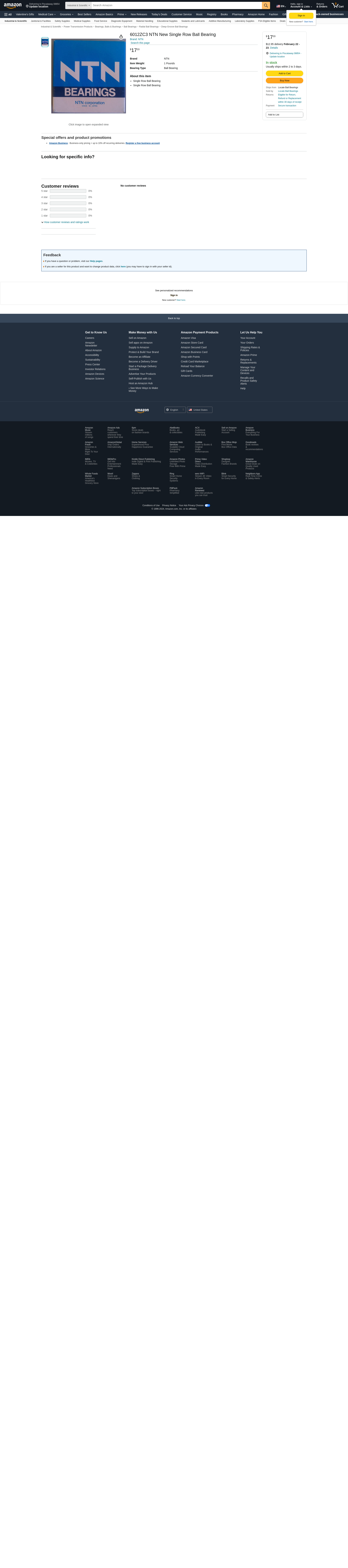THIS LISTING IS FOR 1 PIECE: 6012ZC3 NTN RADIAL/DEEP GROOVE BALL BRG - 60 MM ID X 95 MM OD X 18 MM W; SINGLE SHIELDED - FACTORY NEW