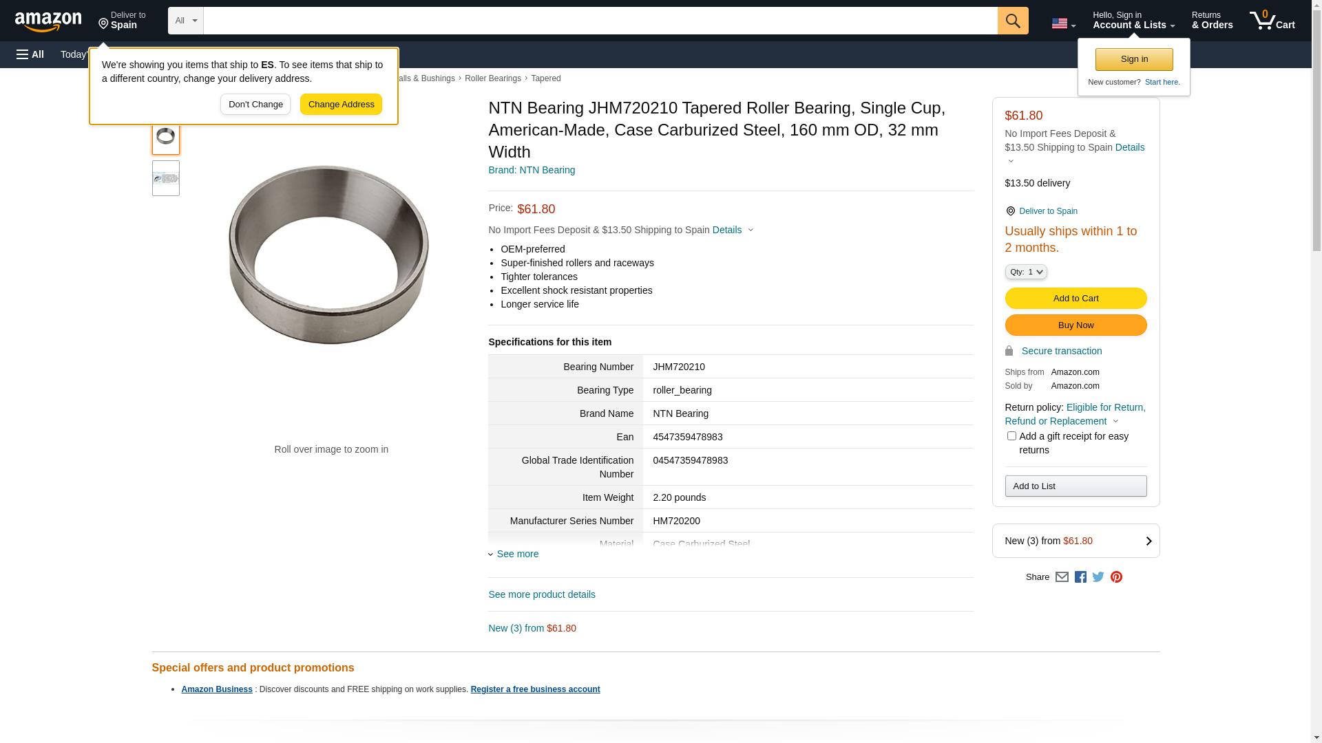 NTN Bearing JHM720210 Tapered Roller Bearing, Single Cup, American-Made, Case Carburized Steel, 160 mm OD, 32 mm Width