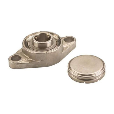 '2-Bolt Flange Bearing, Ball Bearing Insert Type, 1 In. Bore Dia., Bolt Hole Center-to-Center 3-57/64 In., Stainless Steel Bearing Housing Material Type, Set Screw Shaft Locking Type, 440C Stainless Steel Bearing Insert Material, SFL-FG1 Series, Bolt Size 1/2 In., Overall Height 4-15/16 In., Overall Width 1-9/16 In., Overall Length 2-11/16 In., Bearing Lubrication FDA/USDA-H1 Solid Grease, Dynamic Load Capacity 2470 lb., Static Load Capacity 1800 lb., Temp. Range 14 Degrees to 212 Degrees F'