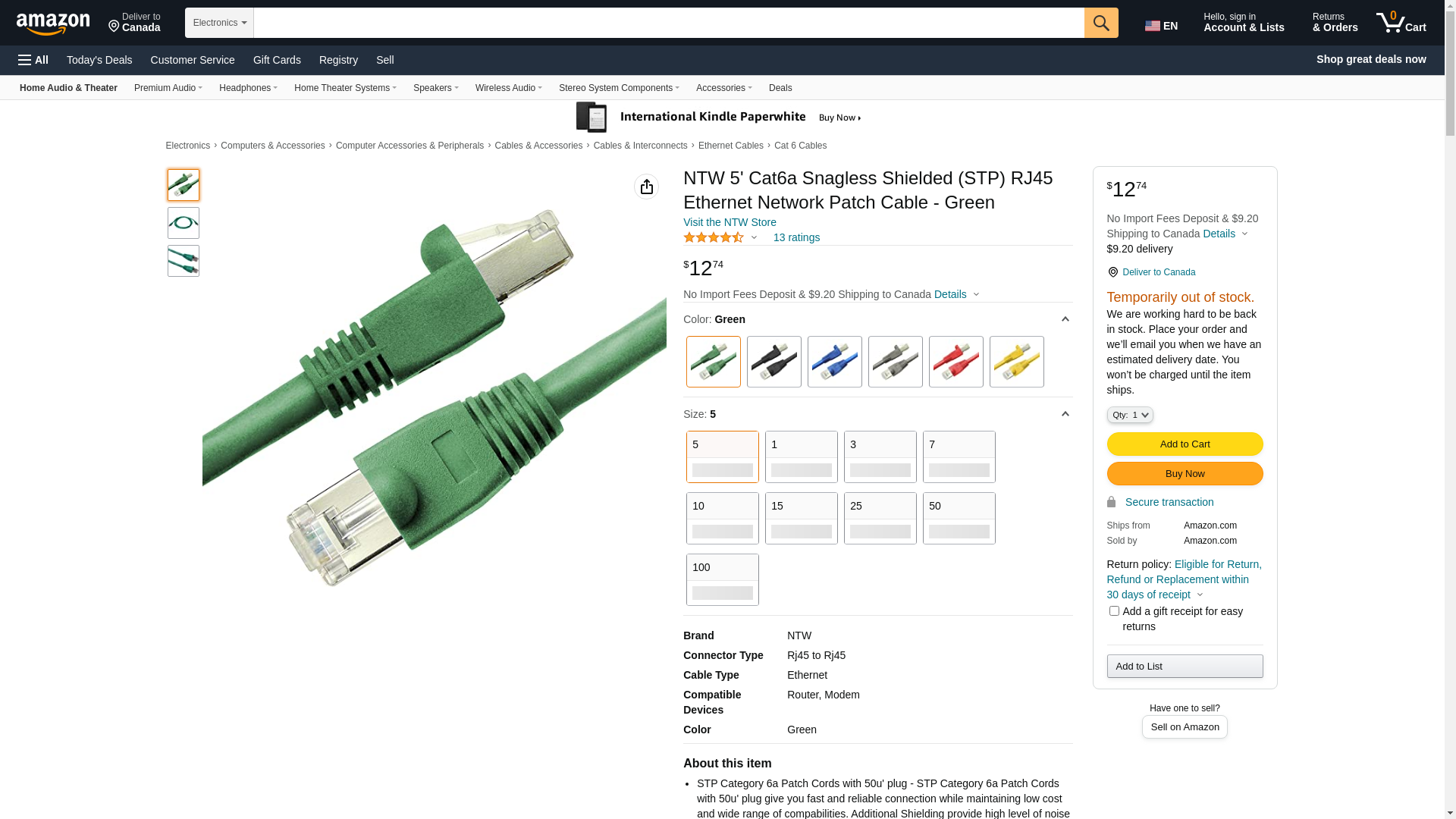 NTW 5' Cat6a Snagless Shielded (STP) RJ45 Ethernet Network Patch Cable - green. STP Category 6a Patch Cords with 50u'...