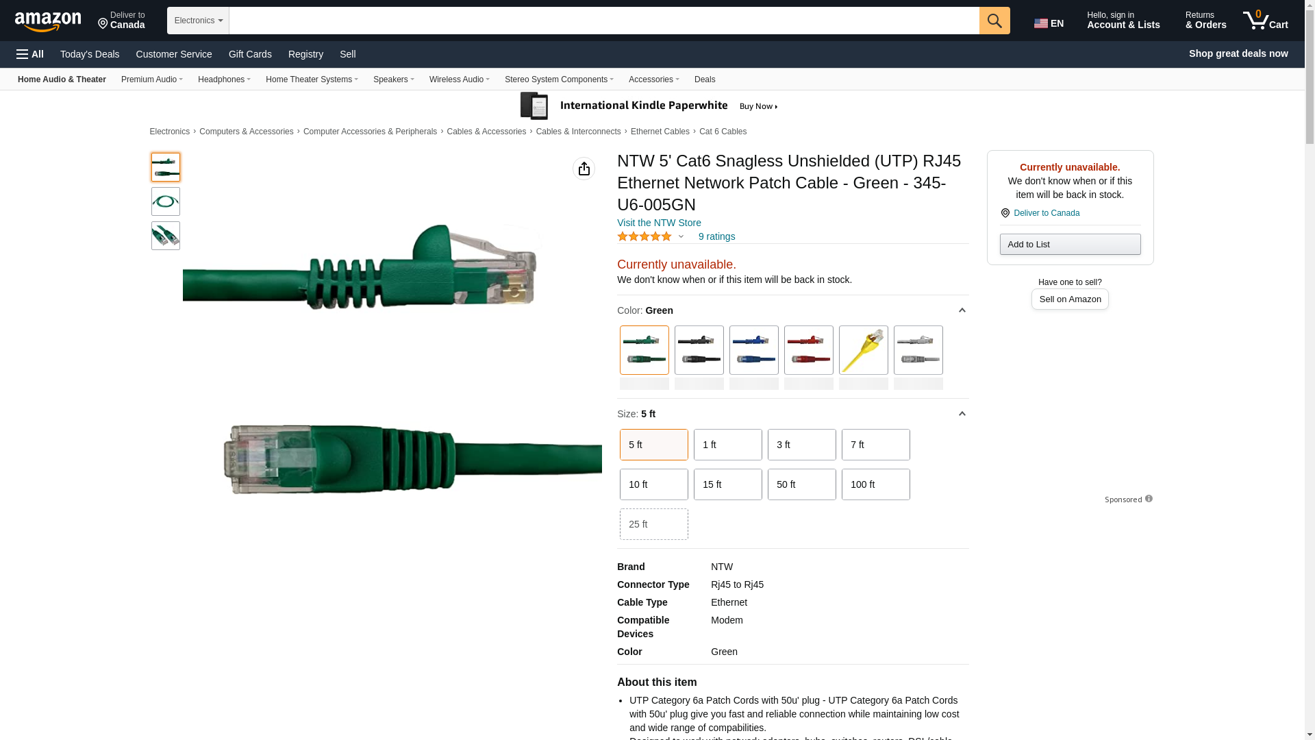 NTW 5' Cat6 Snagless Unshielded (UTP) RJ45 Ethernet Network Patch Cable - Green - 345-U6-005GN. UTP Category 6a Patch...