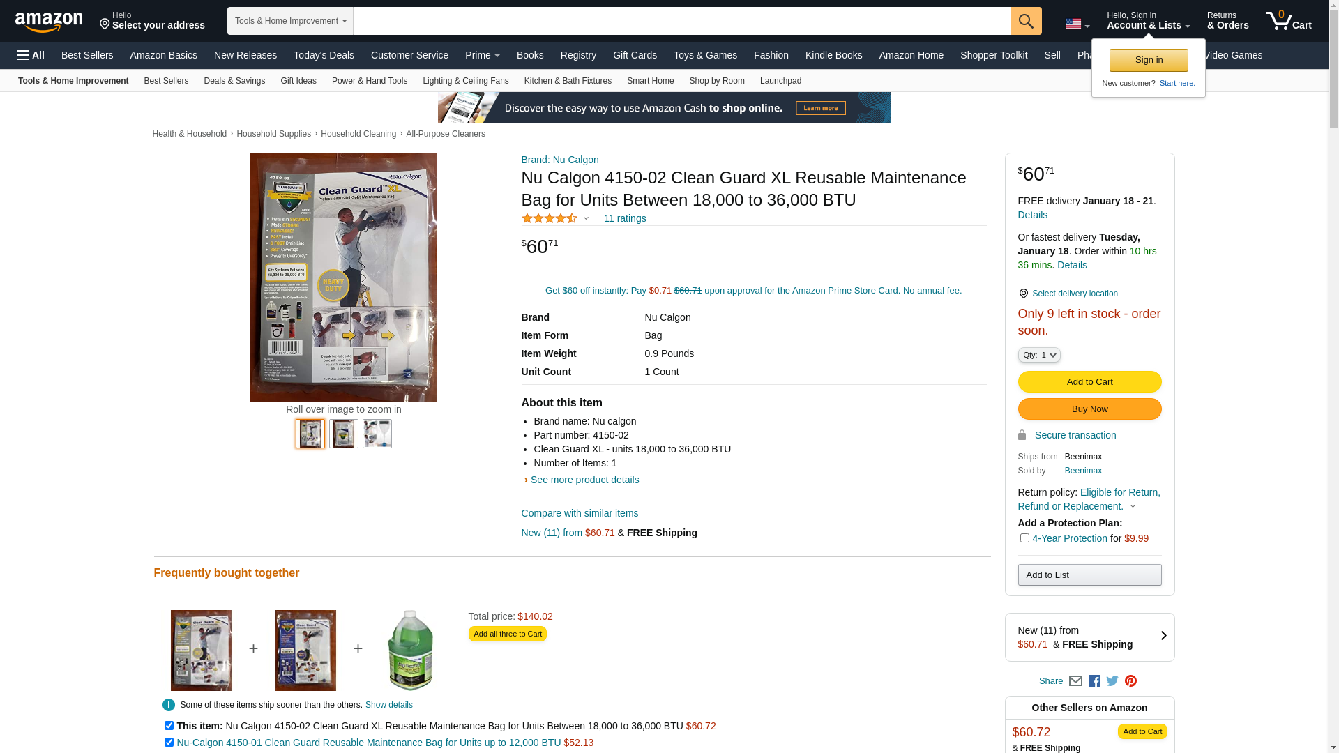Nu Calgon 4150-02 Clean Guard XL Reusable Maintenance Bag for Units Between 18,000 to 36,000 BTU
