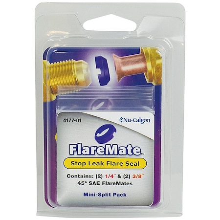 - Nu-Calgon FlareMate Stop Leak Flare Seal Combo Pack includes (2)-1/4" and (2)-3/8" flare seals that improve the integrity of any flare fitting.