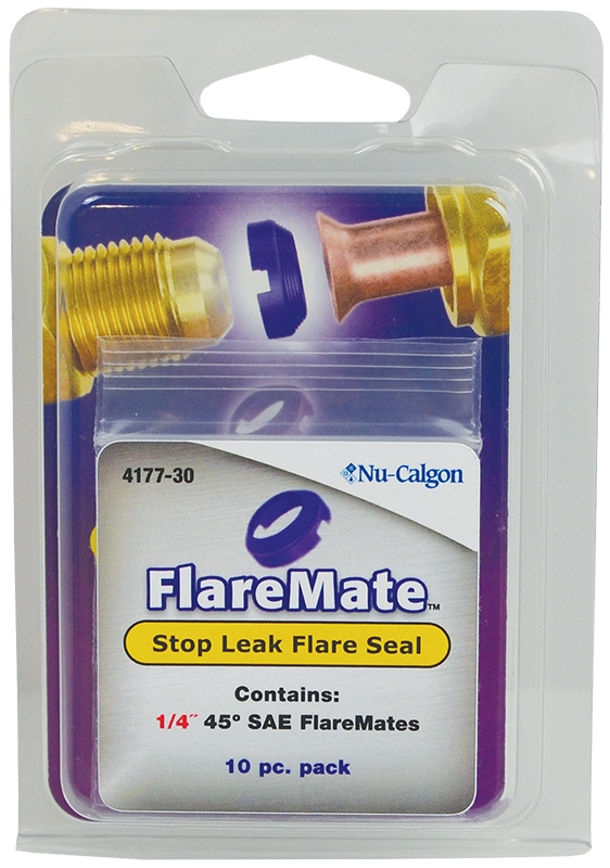 - Nu-Calgon FlareMate Stop Leak Flare Seal 10 pc. Pack includes (10)-1/4" flare seals that improve the integrity of any flare fitting.