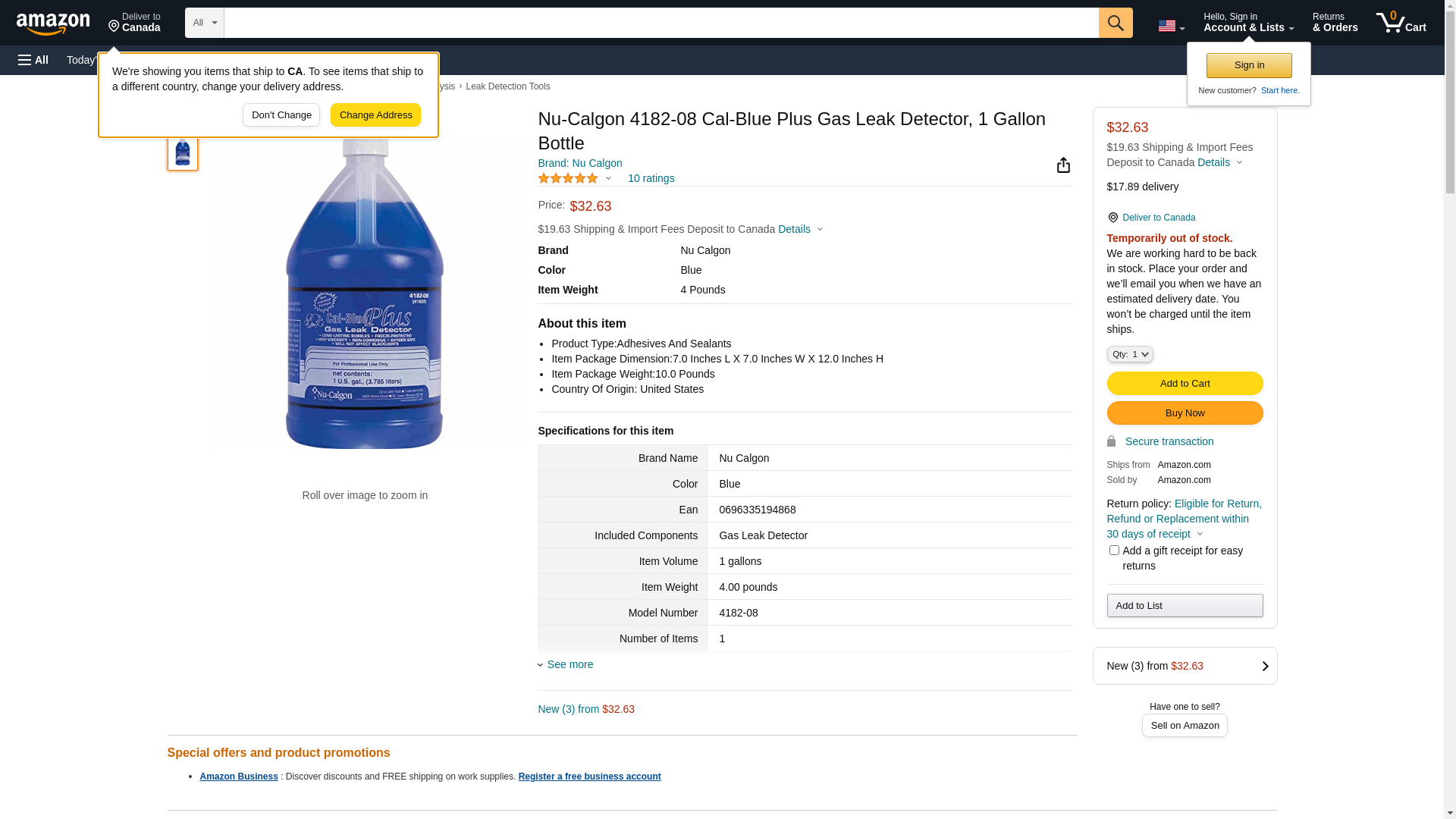Nu-calgon Gas Leak Detector Cal-blue Plus 4182-08