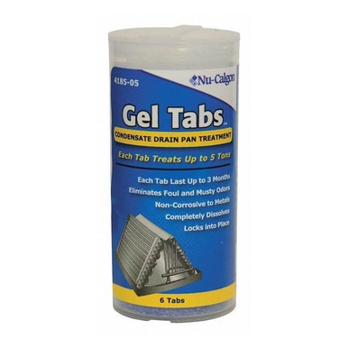 - The genuine Nu-Calgon 4185-05 is a 6 ct. Tube of Gel Tabs - 5 Ton Tabs and is best used for cleaning condensate drain pans and lines.