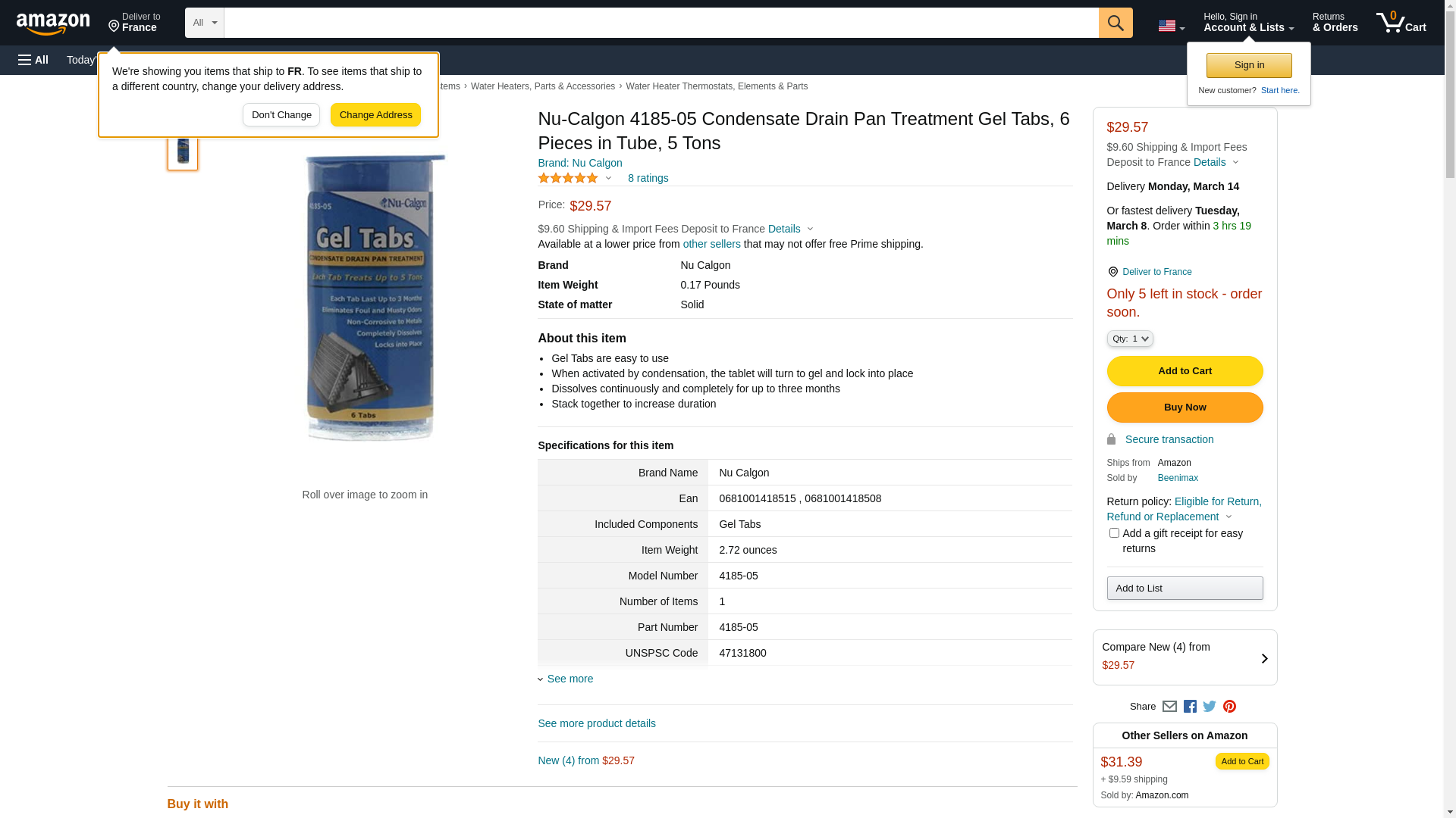 </br><b>Brand/Manufacturer</b>: Nu-Calgon</br><b>Part #</b>: 4185-05</br><b>UPC</b>: 20681001418502</br></br>Condensate Pan Treatment Gel Tabs Up to 5 Ton Protects Drain Pan Against Clogs Odors</br> 0.25 Lbs</br></br></br><b>Category</b>: Supplies >> Maintenance >> Treatments</br><b>Keywords</b>: 4185-05CALGONGELTABSDRAINPAN