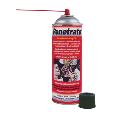 Loosens rusted and frozen metal parts ? Guaranteed! Penetroil frees stuck fan blades, blower shafts, pulleys, rusted nuts and bolts ? any frozen, rusted, or seized metal part! New low surface tension penetrant creeps into the smallest spaces and breaks and dissolves the bonds of rust and corrosion. Saves time and labor. Lubricates and protects metals. Dielectric strength 50,000 volts. For Industrial and Professional Use Only. Penetroil is specially formulated with new low surface tension technology to creep into the smallest cracks, crevices, seams, or threads of rusted, seized, and corroded parts to quickly dissolve the bonds of rust, corrosion, carbon deposits, gums, varnishes, and grease to free the metal parts. Penetroil displaces water and leaves a lubricating film to protect metal parts and prevent rust and corrosion. Super penetrating formula creeps into spaces as small as one millionth of an inch!