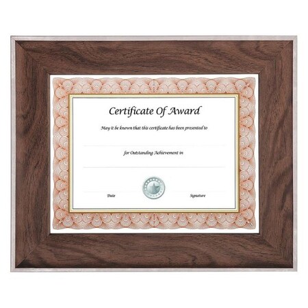 Nu-Dell Series Executive Freestanding Glass Picture Frame for Photo, Diploma, Document or Certificate, 8.5" x 11", Mahogany/Silver Outer Border