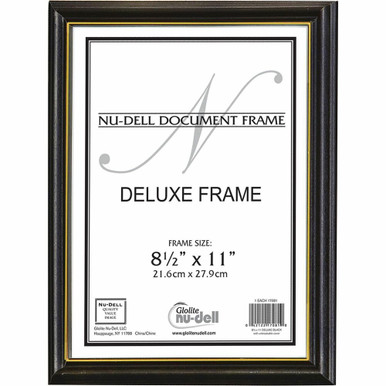 Document Frame, Frame Size 8-1/2 x 11 in, Frame Material Wood, Window Material Plastic, Frame Color Black with Gold Inner Stripe, Mounts Vertically or Horizontally