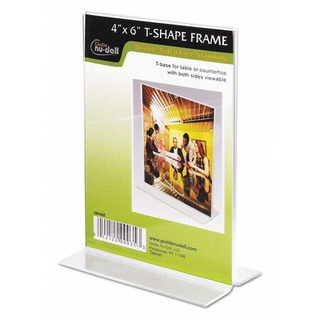 NuDell 4" x 6" Table Top Double Sided T-Base Freestanding Sign Display Frame, Clear