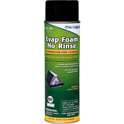 Evaporator Cleaner, Aerosol, Size 18 oz, Color Milky, Application For Evaporator Coils, Characteristics Improves Heat Transfer, Increases System Capacity, and Reduces Head Pressure, Lemon Scented, Non-Flammable Yes, Standards NSF Registered, Meets OSHA