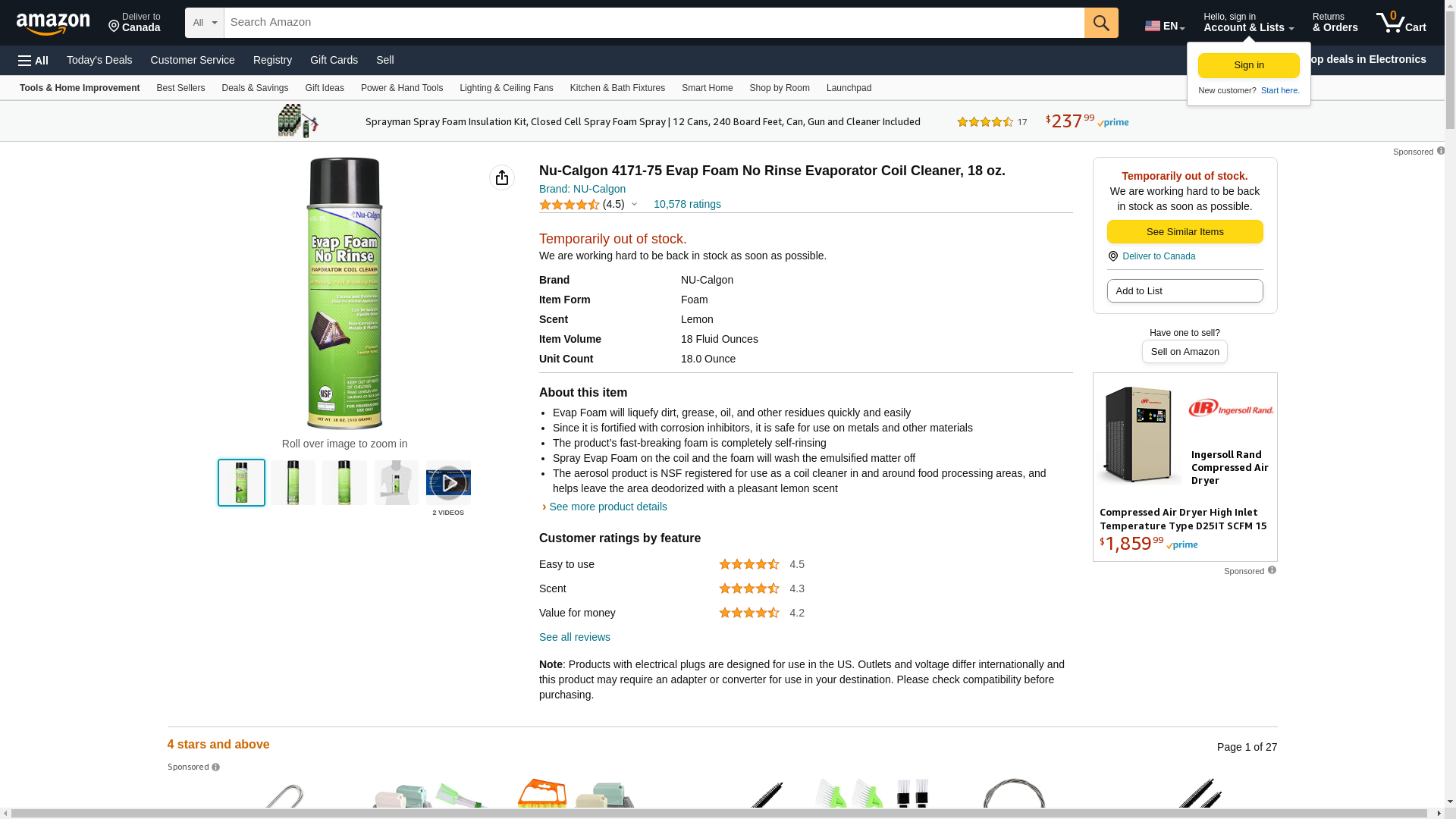 NU-Calgon 4171-75 Evap Foam No Rinse Evaporator Coil Cleaner, 18 oz. (Pack of 2)