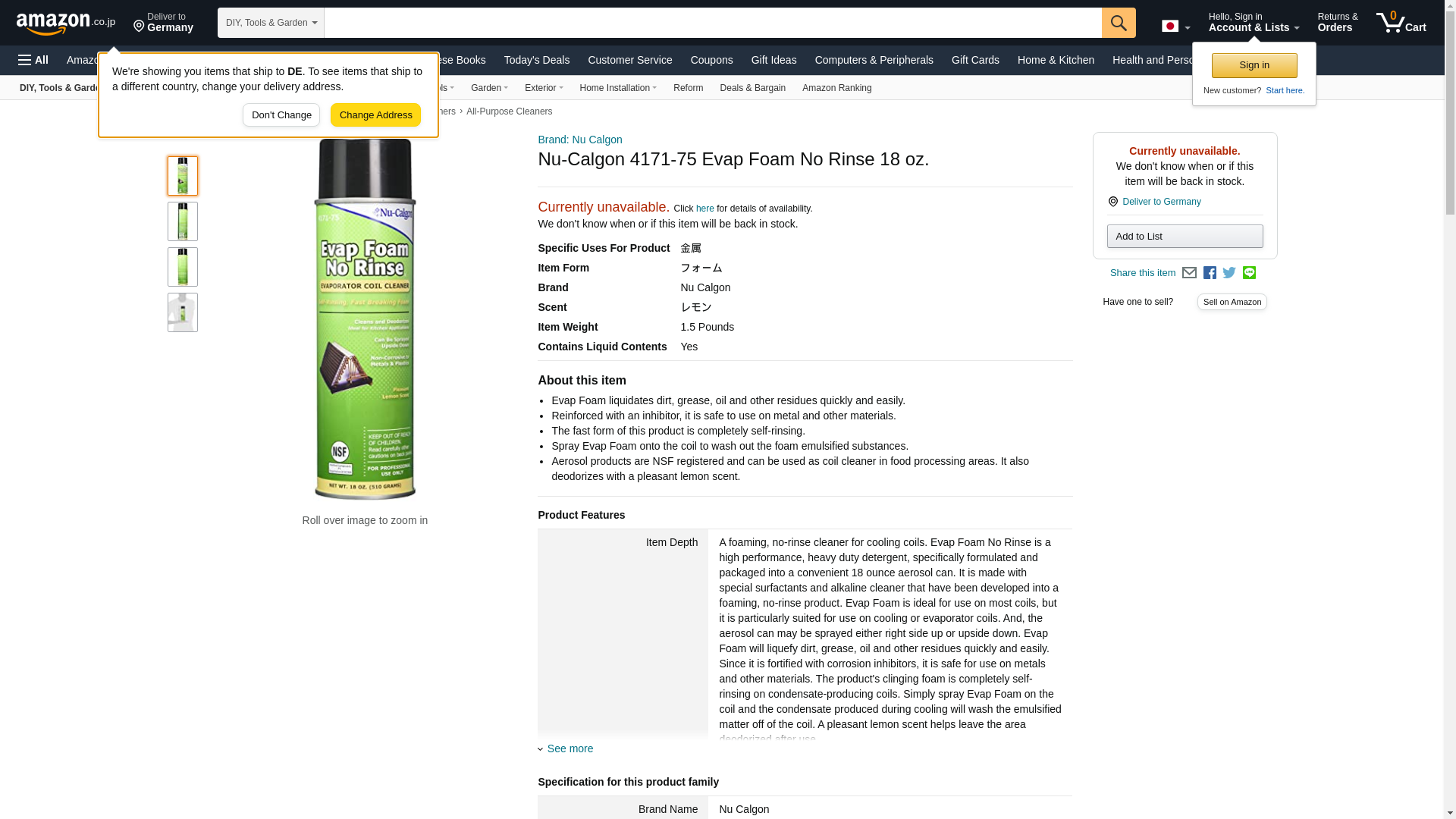 | Feature | Price For: Each Standards: NSF Registered, Meets OSHA Item: Evaporator Cleaner Characteristics: Improves Heat Transfer, Increases System Capacity, and Reduces Head Pressure, Lemon Scented Non-Flammable: Yes Application: For Evaporator Coils Color: Milky Form: Aerosol Size: 18 oz. Country of Origin (subject to change): United States |