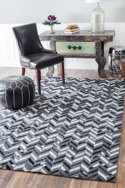 Hand-made rug. Made of the finest leather and felt. Featuring an intricate modern style.