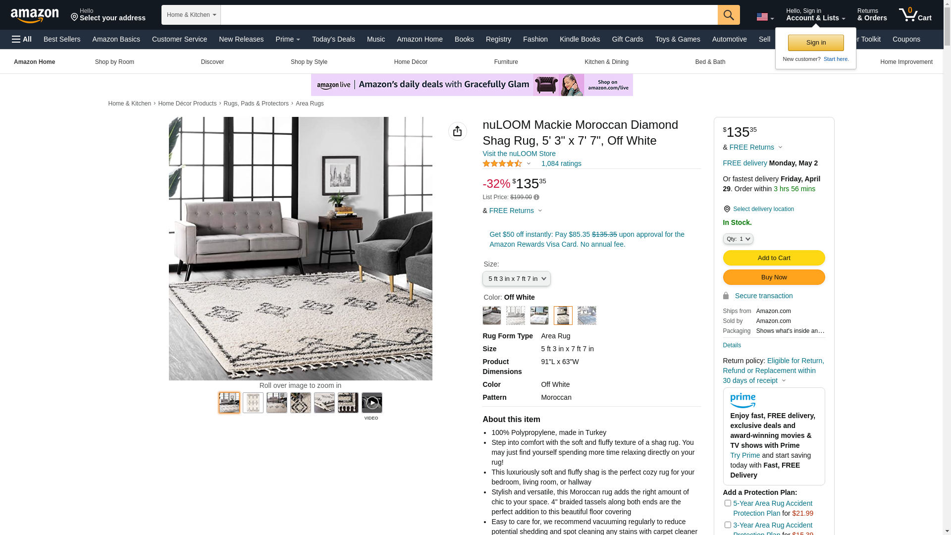 nuLOOM Mackie Moroccan Diamond Tassel Shag Area Rug, 5' 3" x 7' 7", Off-white