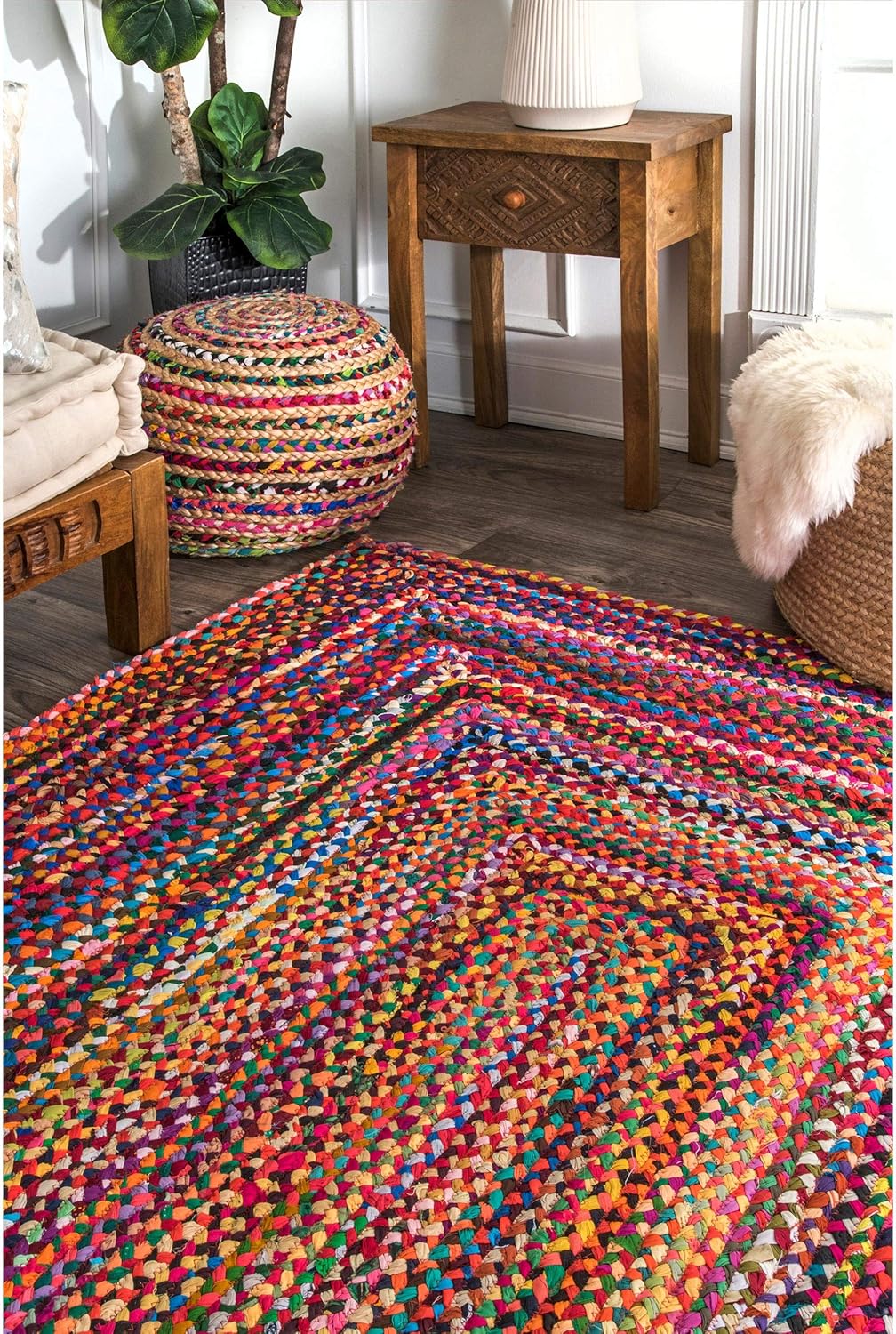 nuLOOM Tammara Boho Cotton Hand Braided Area Rug, 3' x 5' Oval, Multi