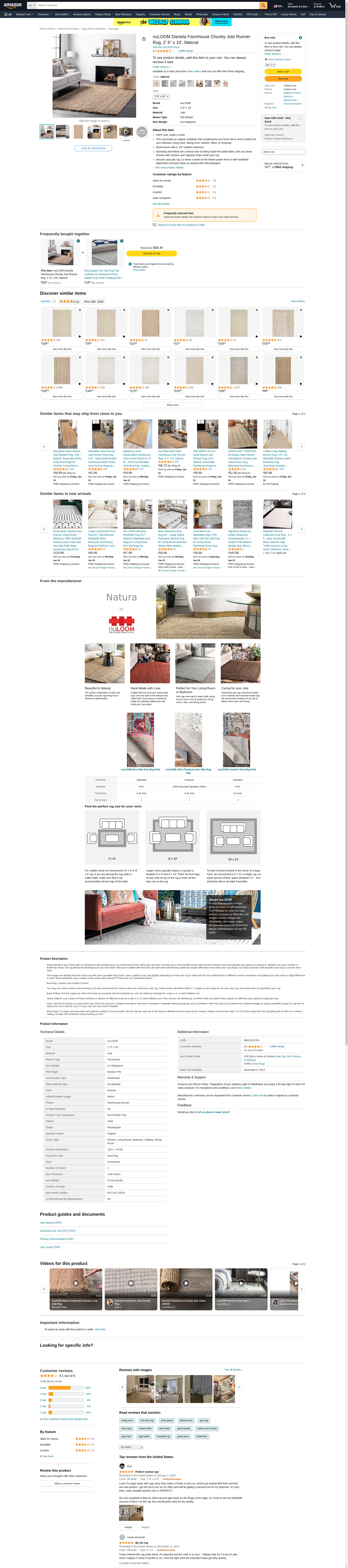 nuLOOM Hand Woven Chunky Natural Jute Farmhouse Runner Rug, 2 ft 6 in x 10 ft