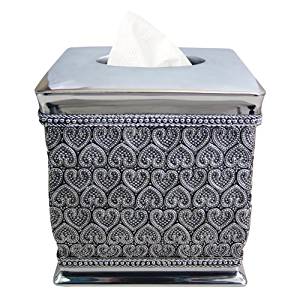 nu steel Boutique Cover,Part of Our Beaded Heart Accessory Set Resin Square Facial Box Bathroom Tissue-Holders, Medium, Silver