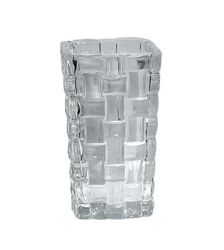 nu steel BW5H Basket Weave Collection Tumbler Cup, Holder for Makeup, Toothbrushes, Brushes On Bathroom, Vanity Countertops, College Dorm, Bedroom Desks Clear Glass Finish, Small