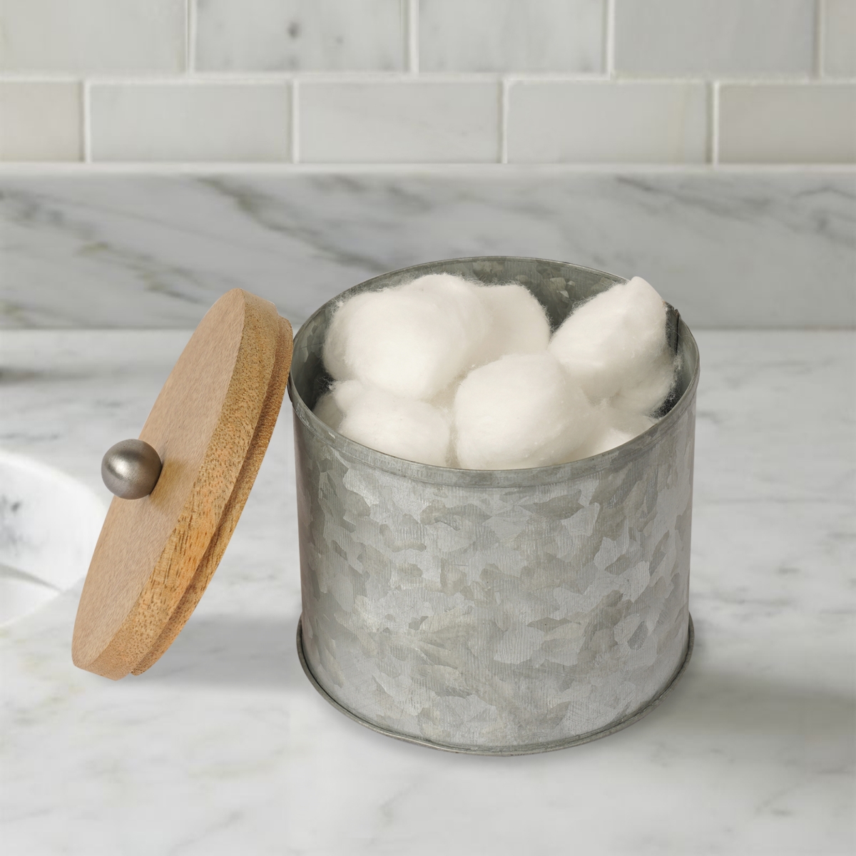nu steel Confetti Bathroom Q-tip Holder & Jar in Galvanized Steel and Wood for Bathrooms & Vanity Spaces