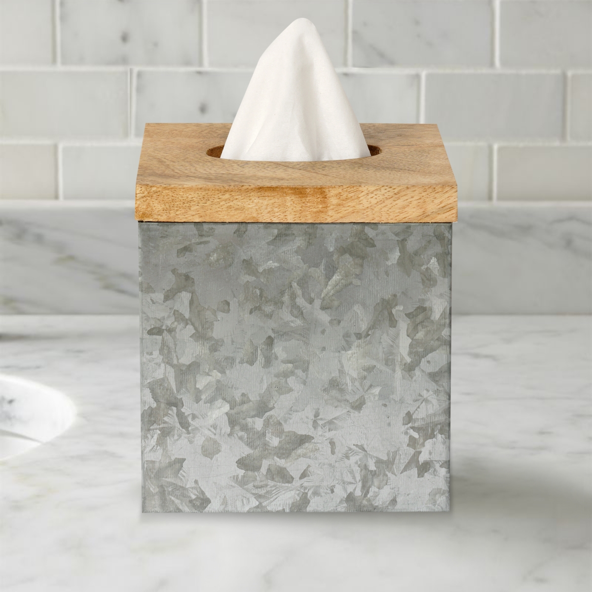 nu steel Confetti Bathroom & Desk Tissue Box Holder in Galvanized Steel and Wood for Bathrooms & Vanity Spaces