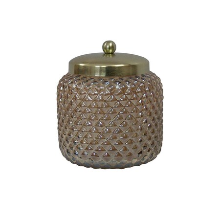 - Make your bathroom a luxurious retreat with the elegantly styled embossed textured amber lustre glass storage jar with steel lid that allows for easy sitting.