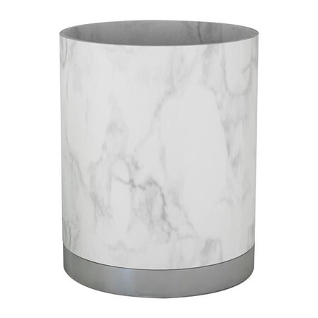 nu steel Misty Silver Wastebasket Trash Bin in Resin Marble & Stainless Steel for Bathrooms & Vanity Spaces