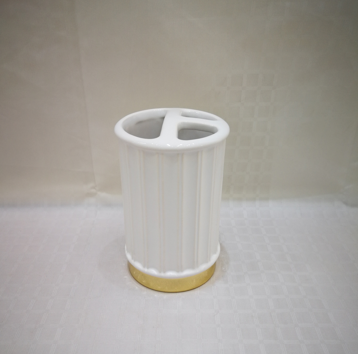nu steel PAN4H Panache Collection Toothbrush Holder for Bathroom Vanity Countertops, Ceramic White Gold Finish
