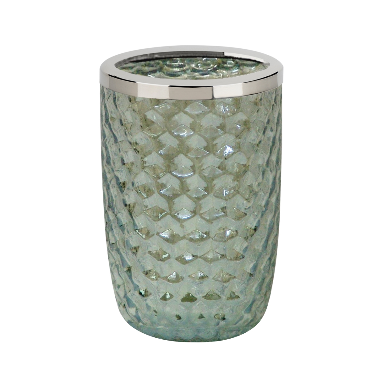 nu steel Sea Glass Collection Glass with Stainless Steel Trim Tumbler Cup for Bathroom Vanity Countertops for Rinsing, Drinking, Storing Accessories and Organizing Makeup Brush, Eye Liners - Sea Green