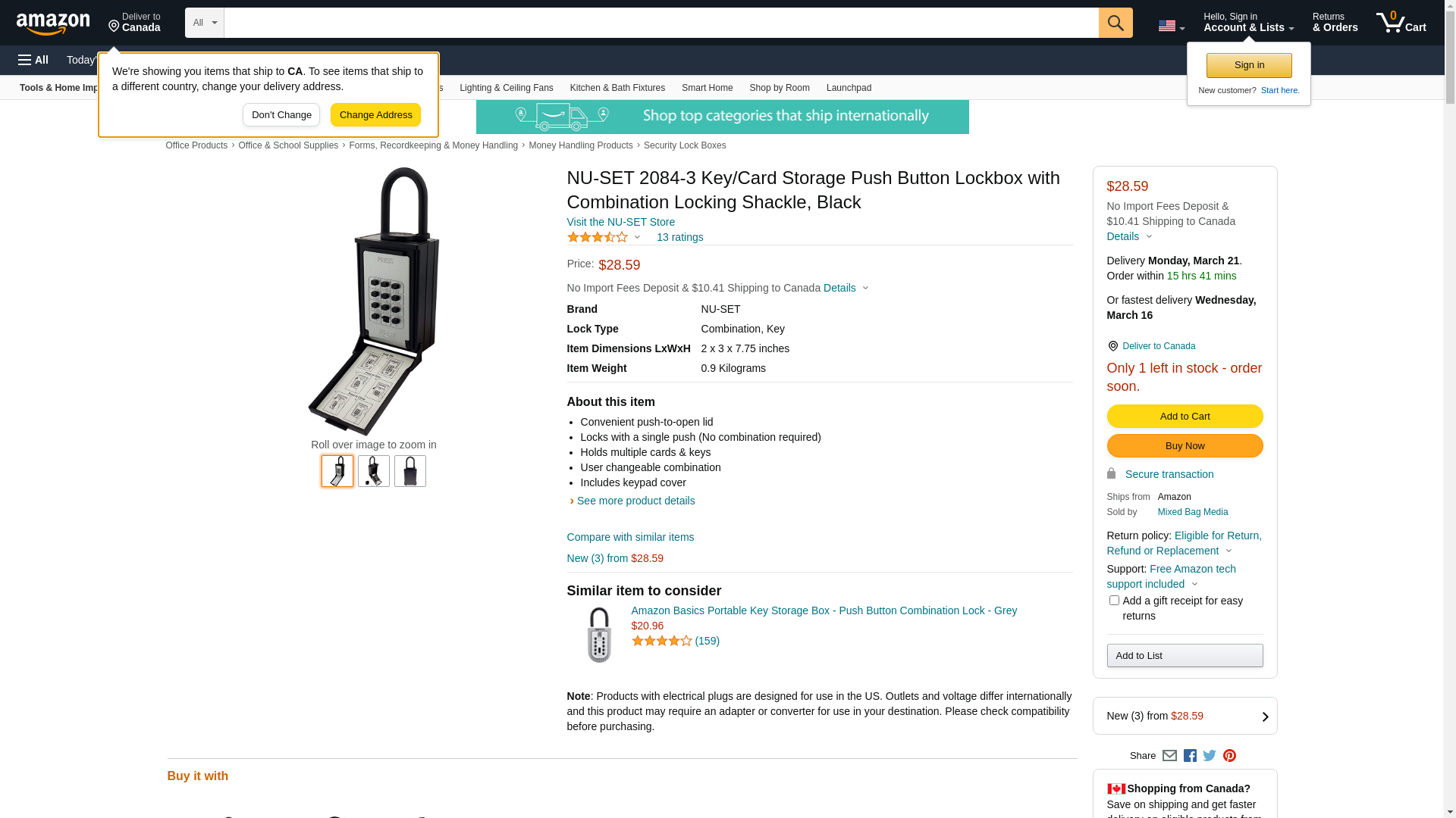 | Feature | Price For: Each Locking Type: Combination Item: Lock Box Material: Zinc Alloy Color: Silver/Black Depth: 2" Weather Resistant: Yes Width: 3" Key Capacity: 6 Includes: Reset Tool Height: 7-3/4" Country of Origin (subject to change): China |
