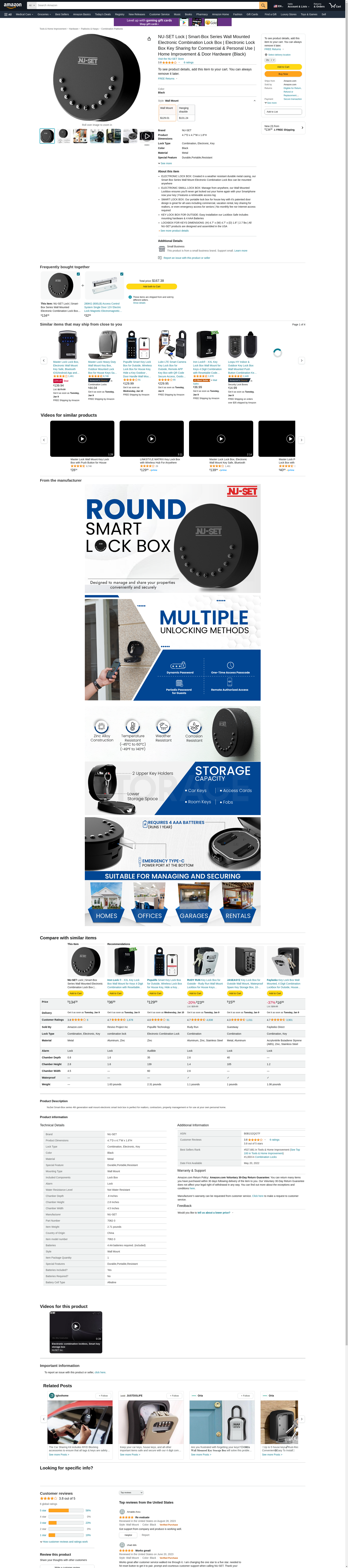 NU-SET Lock | Smart-Box Series Wall Mounted Electronic Combination Lock Box | Electronic Lock Box Key Sharing for Commercial & Personal Use | Home Improvement & Door Hardware (Black)