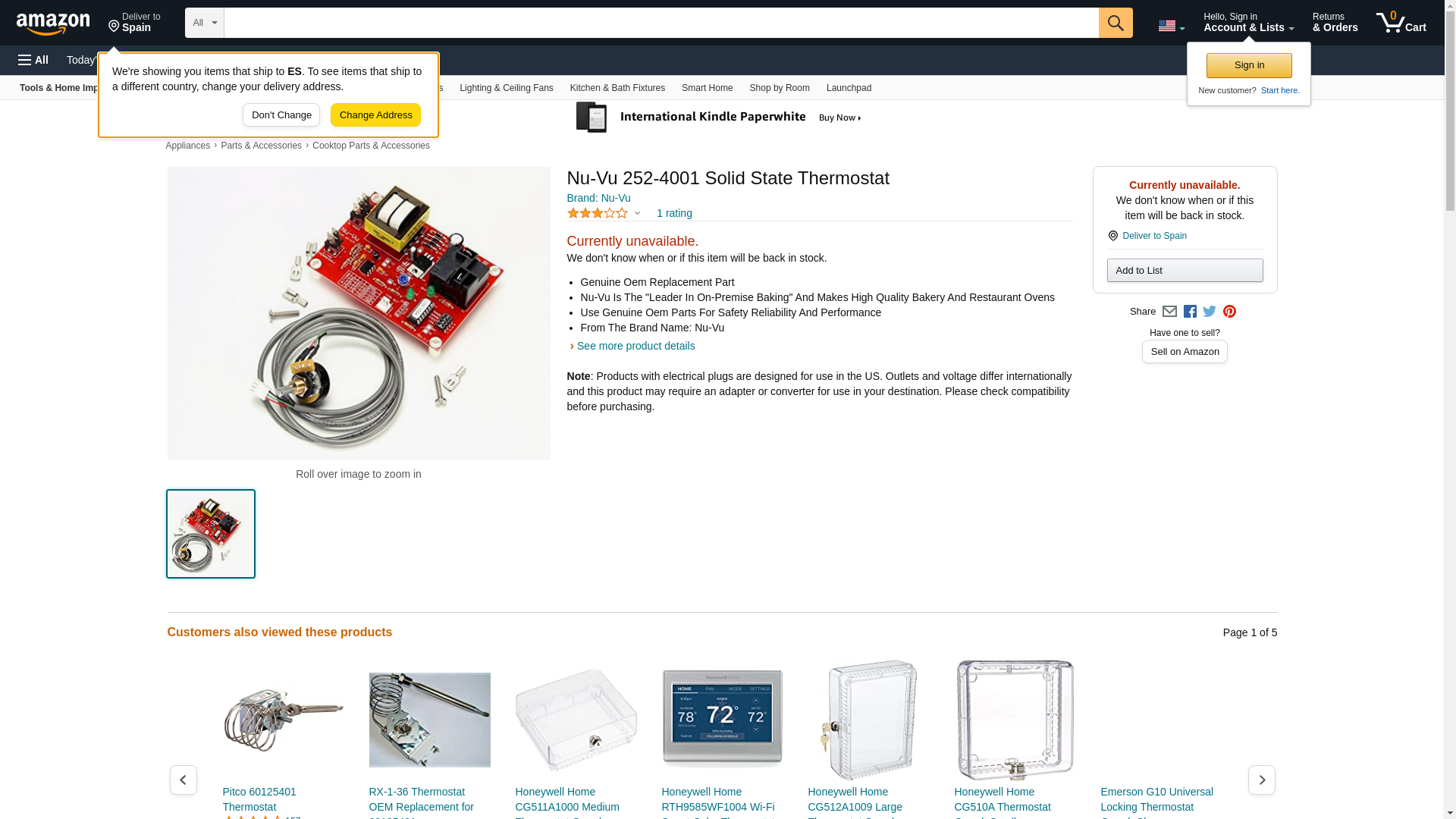 Nu-Vu 252-4001 Solid State Thermostat, 250